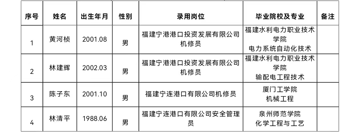 寧德港務(wù)集團(tuán)有限公司 2024年社會(huì)招聘擬錄用人員名單公示