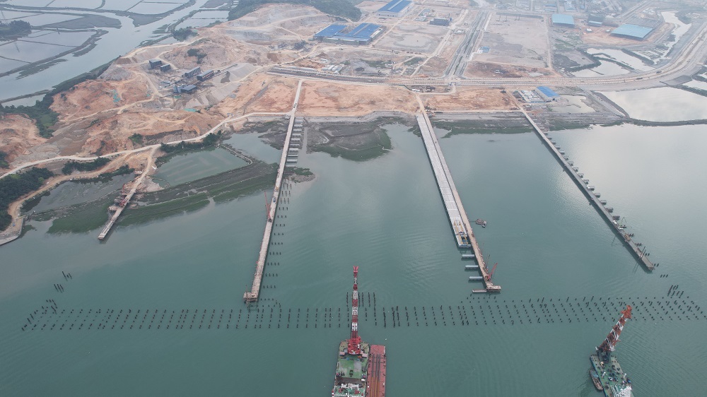 漳灣作業(yè)區(qū)海面上的785根鋼管樁猶如矗立在海上的一根根“定海神針”,形成一片“海上森林”,為后續(xù)碼頭橫梁、縱梁安裝及碼頭面層施工奠定了基礎,也為漳灣作業(yè)區(qū)18-21號泊位連片式開發(fā)邁出了最堅實一步,極大的鼓舞了項目參建人員。